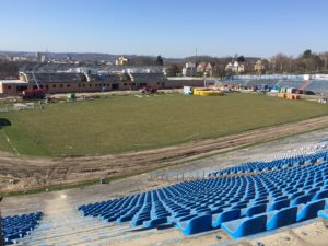 Výroba a montáž nového zastřešení tribuny na Bazalech 54 tun .
